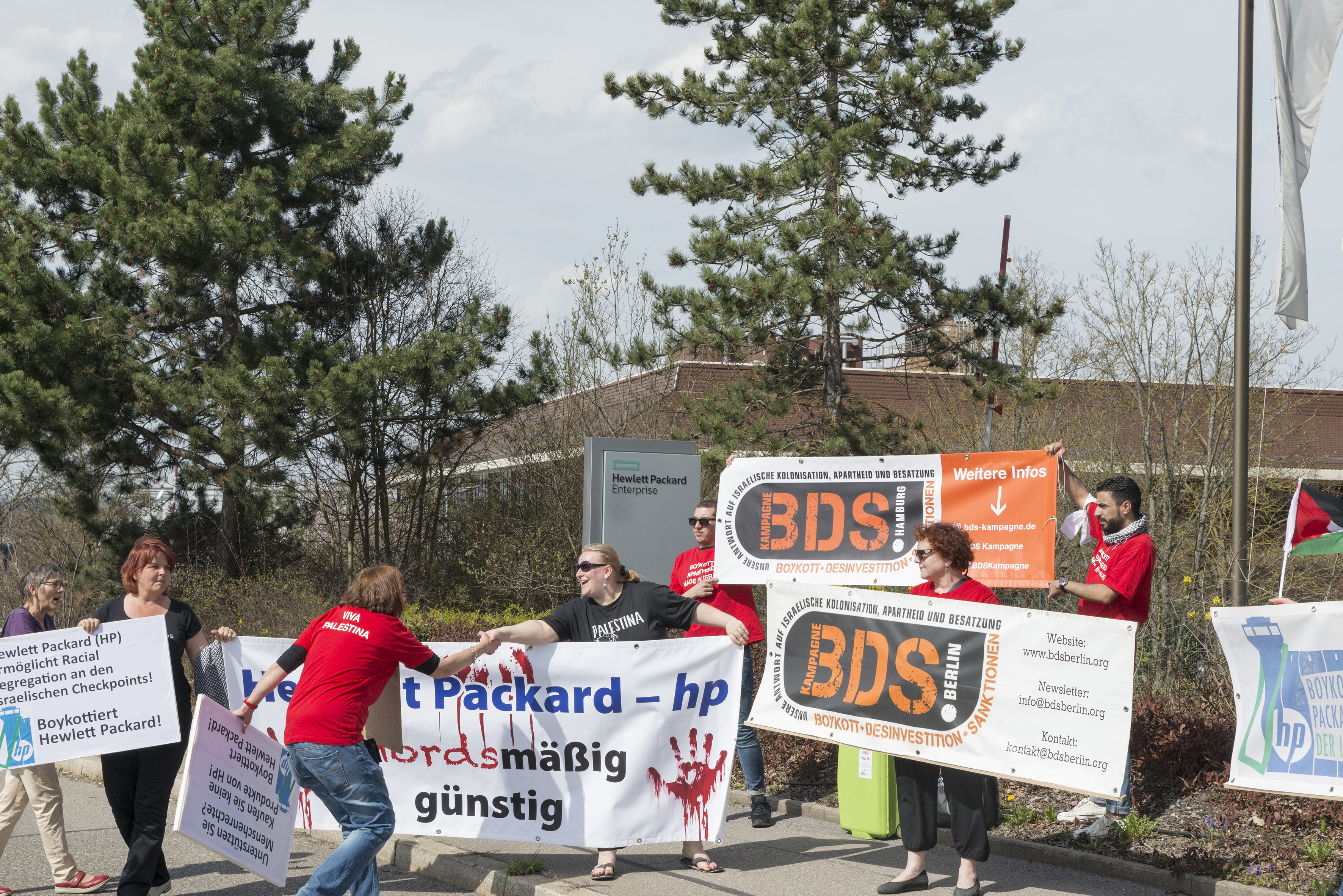 6. Juni 2017: Protestaktion gegen die Geschäfte von Hewlett Packard in Berlin